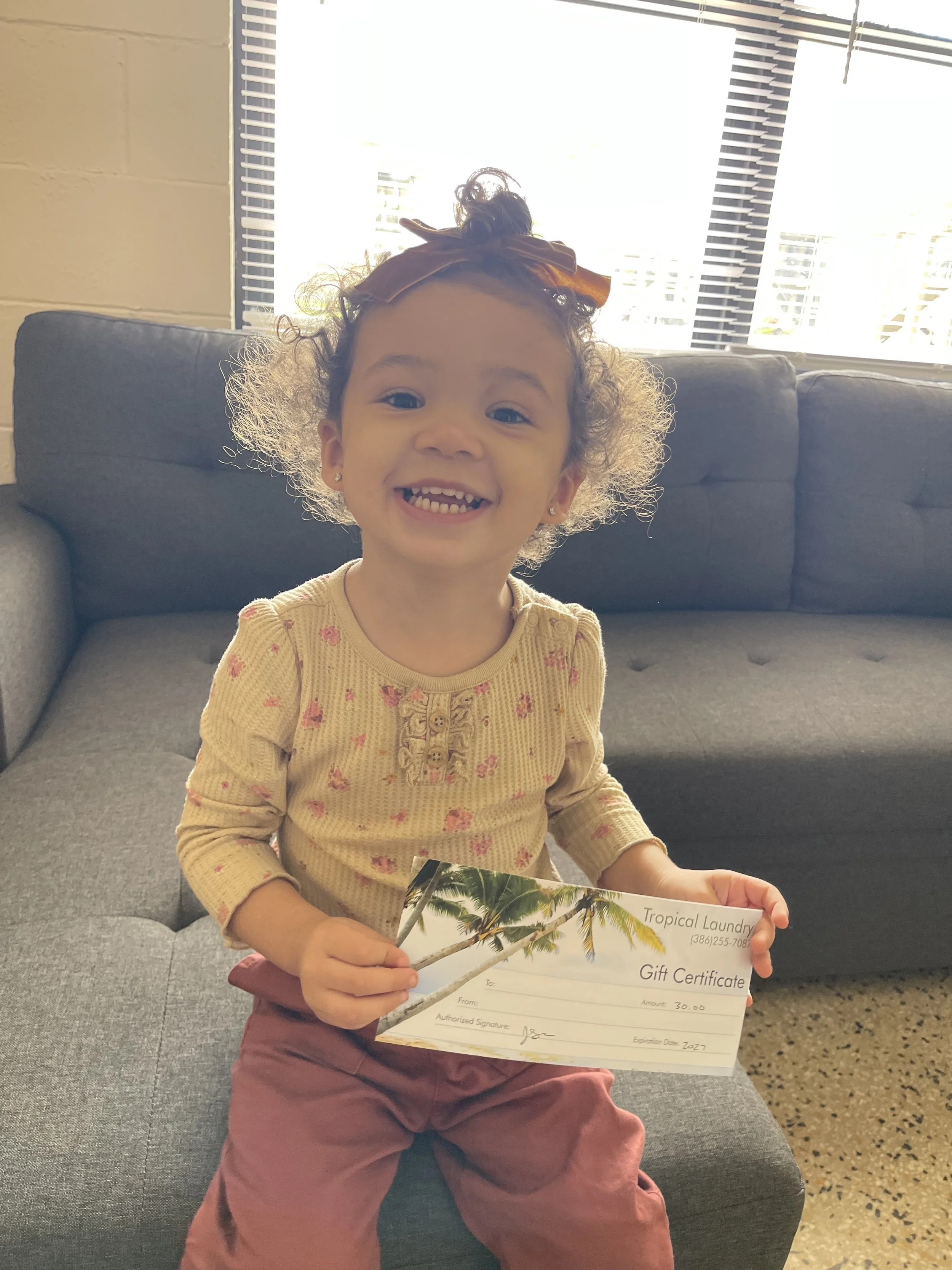 Thanks to the generous donation of several gift certificates from Tropical Laundry, that changed in a big way. The family was able to wash and dry their clothes and bedding for the first time since moving in — a simple act that brought an enormous sense of relief and normalcy.